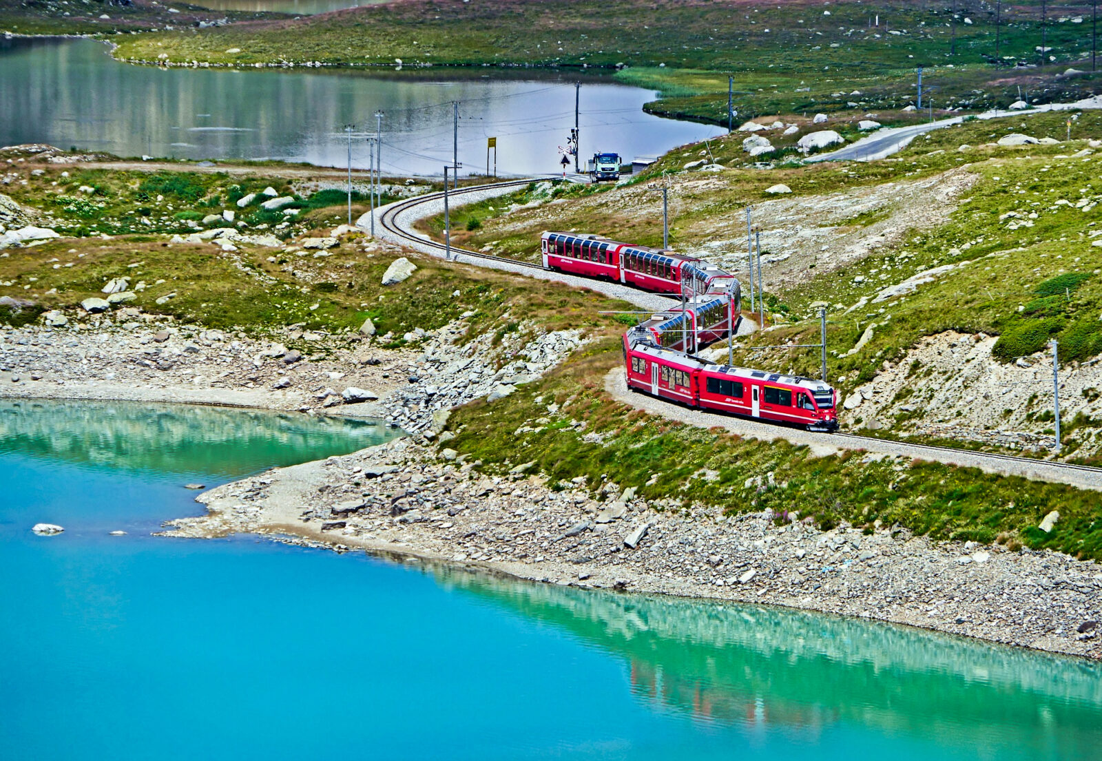 Via Passo del Tonale e Valcamonica arrivo a Tirano (429 m) e partenza in posti riservati con il mitico Trenino Rosso del Bernina. Attivo da ben 116 anni, dal 2008 Patrimonio Mondiale dell’Umanità. È una delle tratte ferroviarie montane più spettacolari e tra le più alte d’Europa, tra panorami mozzafiato e ghiacciai perenni. Attraverso un ambiente tipicamente alpino si raggiunge la Val di Poschiavo, dove la ferrovia sfiora letteralmente le case e la strada principale; a Brusio il trenino effettua un percorso a forma di cerchio per prendere quota in poco spazio, quindi si costeggia il lago di Poschiavo. E poi la spettacolare salita al Passo Bernina (2.256 m), il punto più alto del percorso, con il Lago Bianco, in cui si specchiano i ghiacciai del Piz Palù; si scende verso Sankt Moritz (1.822 m), circondati da uno scenario di montagne che sfiorano i 4.000 metri, sulle quali svetta il Pizzo Bernina. Passeggiata (circa un’ora) nella mondana località turistica dell’Engadina conosciuta in tutto il mondo, adagiata presso un laghetto tra prati e foreste. Continuazione per Livigno (1.816 m), nel bellissimo fondovalle dello Spoel, in zona extra-doganale già dal 1805 e tempo libero per lo shopping (circa 2 ore). Rientro via Val Venosta con arrivo in serata.