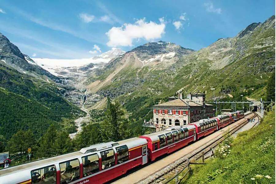 Attraverso la Val Venosta arrivo a Glorenza per una breve sosta nella città più piccola d’Italia, dai portici bassi e un po’ sghembi, tetti a cuspide e sporti. In passato era un passaggio d’obbligo per il commercio tra Germania meridionale, Svizzera e Tirolo. Continuazione per Livigno (1.816m), nel bellissimo fondovalle dello Spoel, in zona extra-doganale già dal 1805. Tempo libero per lo shopping ed il pranzo libero o al sacco. Nel pomeriggio arrivo a St. Moritz (1.822 m), mondana località turistica dell’Engadina, che si affaccia su di un laghetto tra prati e foreste. Partenza in vettura panoramica con posti riservati di 2° classe nel mitico Bernina Express più comunemente chiamato Trenino Rosso, attivo da oltre 100 anni. Patrimonio Mondiale dell’Umanità dal 2008, una delle tratte ferroviarie alpine più spettacolari e tra le più alte d’Europa, con panorami mozzafiato e ghiacciai perenni: circondati da uno scenario di montagne che sfiorano i 4000 metri, sulle quali svetta il Pizzo Bernina. Spettacolare la salita al Passo Bernina (2.256m), il punto più alto del percorso, con il Lago Bianco, in cui si specchiano i ghiacciai del Pitz Palù. Si continua attraverso un ambiente tipicamente alpino raggiungendo la Val di Poschiavo, dove la ferrovia sfiora letteralmente le case e la strada principale; quindi si costeggia il lago di Poschiavo. A Brusio il trenino effettua un percorso a forma di cerchio per perdere quota in poco spazio, arrivando infine a Tirano (429 m). Rientro attraversando la Valcamonica e la Val di Sole, con arrivo in serata.