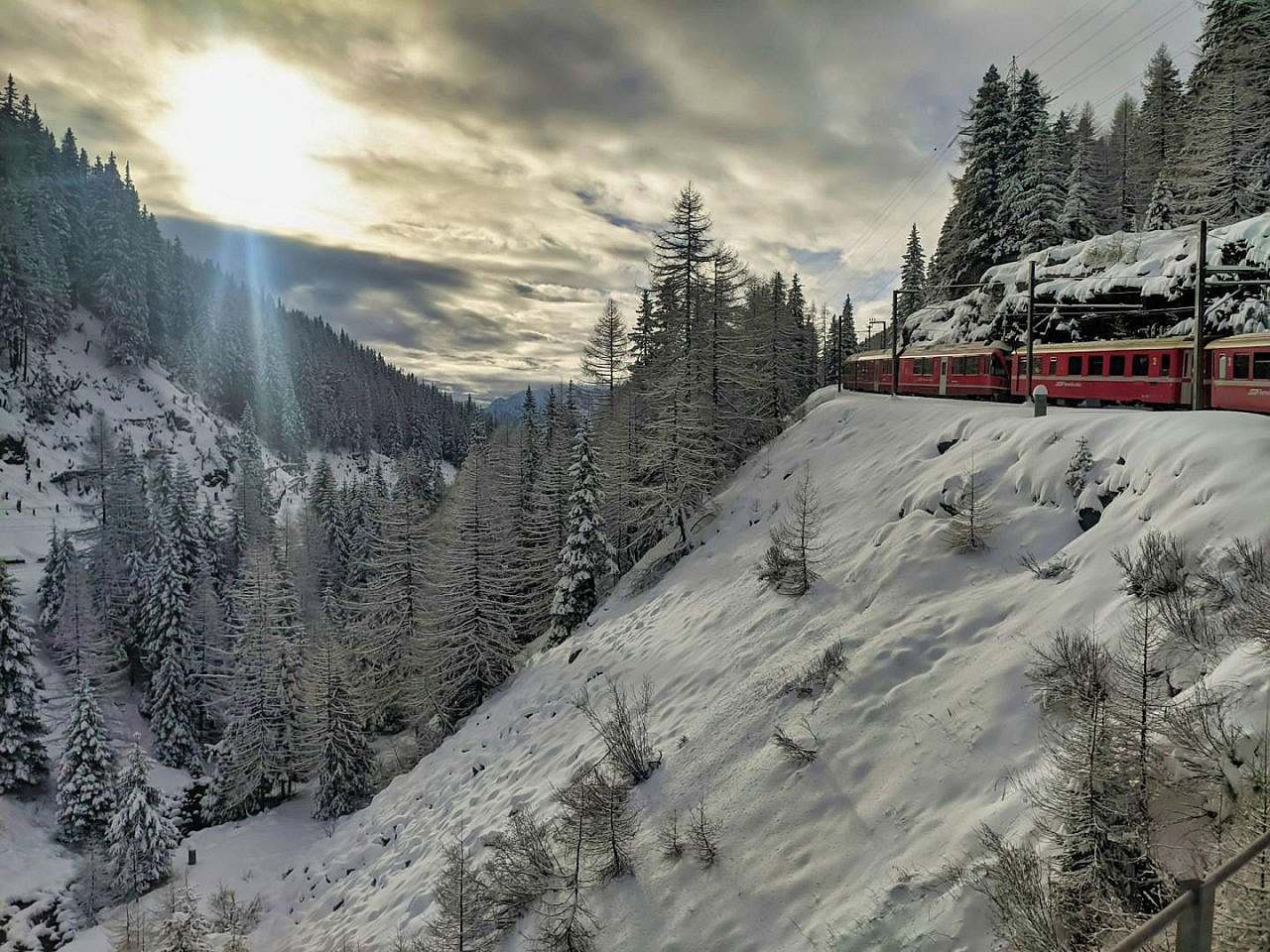 Via Passo del Tonale e Valcamonica arrivo a Tirano (429 m) e partenza in posti riservati con il mitico Trenino Rosso del Bernina. Attivo da ben 116 anni, dal 2008 Patrimonio Mondiale dell’Umanità. È una delle tratte ferroviarie montane più spettacolari e tra le più alte d’Europa, tra panorami mozzafiato e ghiacciai perenni. Attraverso un ambiente tipicamente alpino si raggiunge la Val di Poschiavo, dove la ferrovia sfiora letteralmente le case e la strada principale; a Brusio il trenino effettua un percorso a forma di cerchio per prendere quota in poco spazio, quindi si costeggia il lago di Poschiavo. E poi la spettacolare salita al Passo Bernina (2.256 m), il punto più alto del percorso, con il Lago Bianco, in cui si specchiano i ghiacciai del Piz Palù; si scende verso Sankt Moritz (1.822 m), circondati da uno scenario di montagne che sfiorano i 4.000 metri, sulle quali svetta il Pizzo Bernina. Passeggiata (circa un’ora) nella mondana località turistica dell’Engadina conosciuta in tutto il mondo, adagiata presso un laghetto tra prati e foreste. Continuazione per Livigno (1.816 m), nel bellissimo fondovalle dello Spoel, in zona extra-doganale già dal 1805 e tempo libero per lo shopping (circa 2 ore). Rientro via Val Venosta con arrivo in serata.