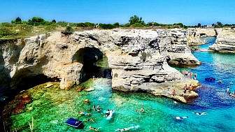 Fatta colazione proseguiamo il nostro cammino verso la baia di Porto Miggiano fino ad arrivare a Castro. Visitato il centro storico del piccolo borgo, si scende verso Castro Marina. Da Punta Correnti inizia un tratto di 2 km su scogliera un po’ esposto, valuteremo in loco con la guida se fare questo tratto sulla strada asfaltata parella. Arrivo alla cala dell’acquaviva, un’insenatura con sorgenti di acqua fredda, ai piedi della serra di Marittima. Si prosegue tramite il sentiero natura belvedere, il sentiero serra del mito, passando la torre del sasso e le sette pajare e arrivando a Tricase porto, premiata con le 3 Vele di Legambiente. Si raggiunge infine Marina Serra tramite la litoranea, famosa per la sua favolosa piscina naturale.