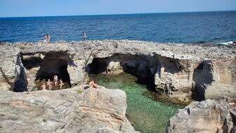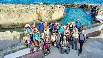 Fatta colazione proseguiamo il nostro cammino verso la baia di Porto Miggiano fino ad arrivare a Castro. Visitato il centro storico del piccolo borgo, si scende verso Castro Marina. Da Punta Correnti inizia un tratto di 2 km su scogliera un po’ esposto, valuteremo in loco con la guida se fare questo tratto sulla strada asfaltata parella. Arrivo alla cala dell’acquaviva, un’insenatura con sorgenti di acqua fredda, ai piedi della serra di Marittima. Si prosegue tramite il sentiero natura belvedere, il sentiero serra del mito, passando la torre del sasso e le sette pajare e arrivando a Tricase porto, premiata con le 3 Vele di Legambiente. Si raggiunge infine Marina Serra tramite la litoranea, famosa per la sua favolosa piscina naturale.