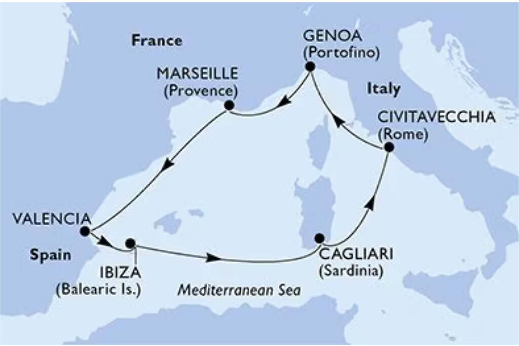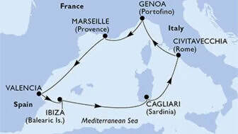 Regalati 8 giorni di crociera nel Mediterraneo a bordo della MSC Musica. Partiremo dal porto di Genova, e visiteremo Marsiglia (Francia), Valencia (Spagna), Ibiza (Spagna), Cagliari e Civitavecchia…