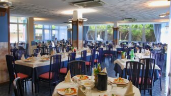 Particolarmente curata, prima colazione a buffet servita, scelta di 3 menù di cui uno di pesce,5-6 tipologie di insalate diverse, gelato, sorbetto e torta del giorno; domenica piatti tipici abruzzesi; menu per celiaci, intolleranti, vegetariani; aperitivo servito la domenica prima del pranzo tradizionale abruzzese, 1 serata musicale; bevande ai pasti escluse.