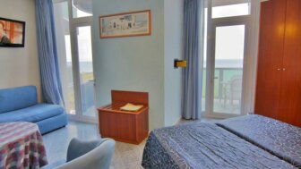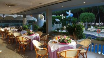4 stelle, molto confortevole, gestito dai proprietari, in prima fila sul lungomare, dal quale è separato da un giardino e dalla verde e fresca pineta, dispone di: piscina adulti e bambini con idromassaggio, bar comunicante con la terrazza della piscina, ampia sala Tv con ricezione satellitare, due ascensori, Wi-Fi, ristorante panoramico climatizzato con da due sale, di cui una per famiglie con bambini, ricco programma di animazione.