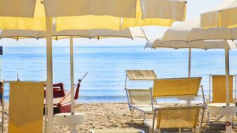 Ampia spiaggia privata di sabbia finissima, mare limpido e fondale basso; inclusi 1 ombrellone + 1 sdraio + 1 lettino per camera.