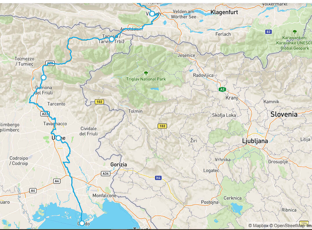 Partiremo di buonora in pullman o minibus per raggiungere, prima di mezzogiorno Villach in Austria sulle sponde della Drava dove inizierà il nostro viaggio in bici su una bellissima ciclabile di 410 km. da Salisburgo a Grado. Non avremo tempo per pranzare prima della partenza in bici e pertanto ognuno si dovrà portare qualche cosa da casa. Il tracciato sarà su asfalto a parte 3 km di sterrato dal 10° al 13° km. Ad un tratto pianeggiante ne seguirà uno in leggera salita fino a poco oltre Tarvisio ed un tratto finale in leggera discesa. Raggiunta la meta caricheremo le bici sul carrello e proseguiremo in pullman verso il nostro hotel. La cena di gruppo sarà in un ristorante poco distante dall’hotel.