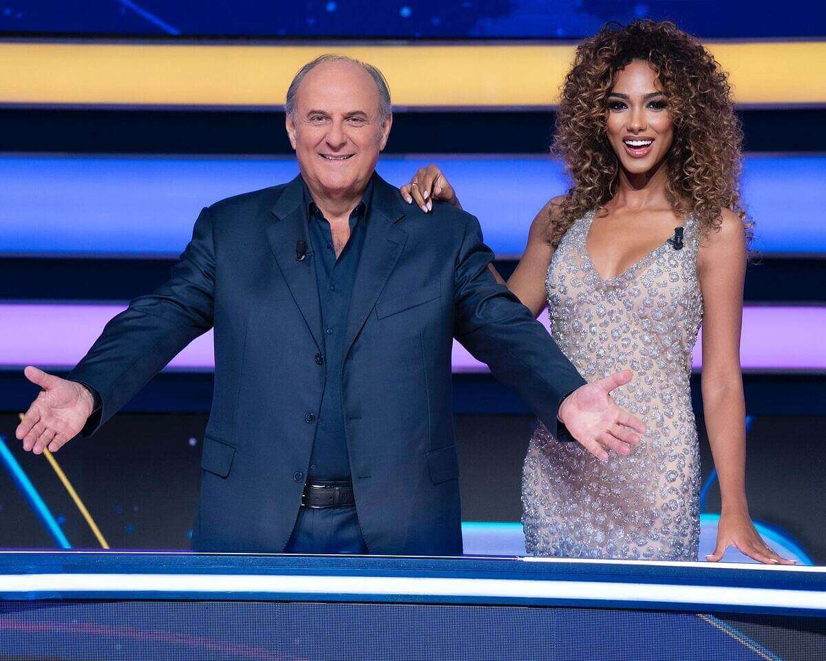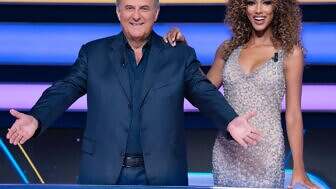 negli studi di registrazione con Gerry Scotti e Samira Lui