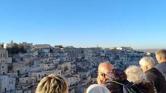 Mezza pensione in albergo. Partenza per Altamura, su un alto colle delle Murge: di antiche origini, è celebre per il suo pane DOP e per l’eccezionale scoperta nella vicina grotta di Lamalunga dell’”uomo di Altamura”, scheletro di un Neandertal; una sua fedele ricostruzione si trova nel Museo Nazionale in paese. Degustazione di pane e focaccia (N.B. tutti i prodotti contengono glutine). Continuazione per la Basilicata fino a Matera, unica nel suo genere, Patrimonio dell’Umanità, il cui nucleo più antico è rupestre, in parte scavato nella roccia, in parte costruito con lo stesso tufo della gravina: sono i celebri Sassi, suggestivo scenario fuori dal tempo. Visita guidata e tempo a disposizione.