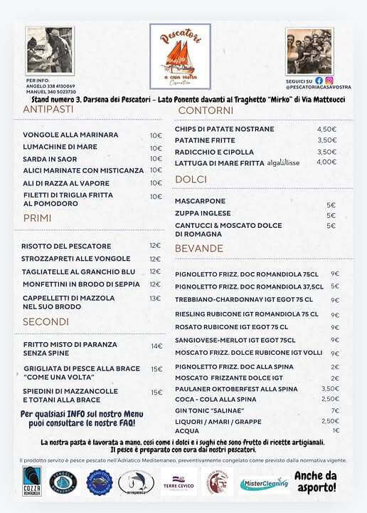 Una delle foto su questo sito riporta il menù presentato dall’Associazione Pescatori di Cesenatico