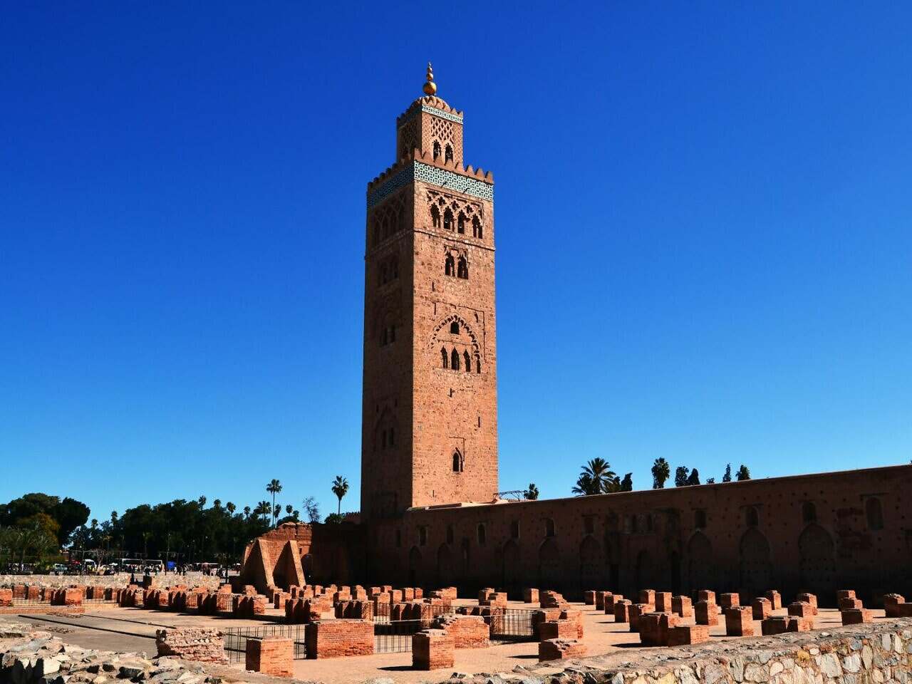 Oggi giornata culturale con visita della frizzante Marrakech. Esploreremo i principali luoghi storici e culturali della città. Il meraviglioso Palazzo Bahia, capolavoro dell’architettura marocchina del XIX secolo, con i suoi giardini, cortili e dettagli decorativi mozzafiato; la Moschea Koutoubia (visita esterna), simbolo della città con il suo alto minareto visibile da ogni angolo della medina e i celebri Giardini Majorelle, un angolo di pace e bellezza creato dall’artista francese Jacques Majorelle e restaurato da Yves Saint Laurent, tra cactus esotici, fontane e intense tonalità di blu. Pranzo libero e pomeriggio a disposizione per passeggiare tra le viuzze della medina storica e nei vivaci souk tradizionali, dove respirare l’atmosfera autentica della città tra spezie, tessuti e artigianato. Cena e pernottamento.